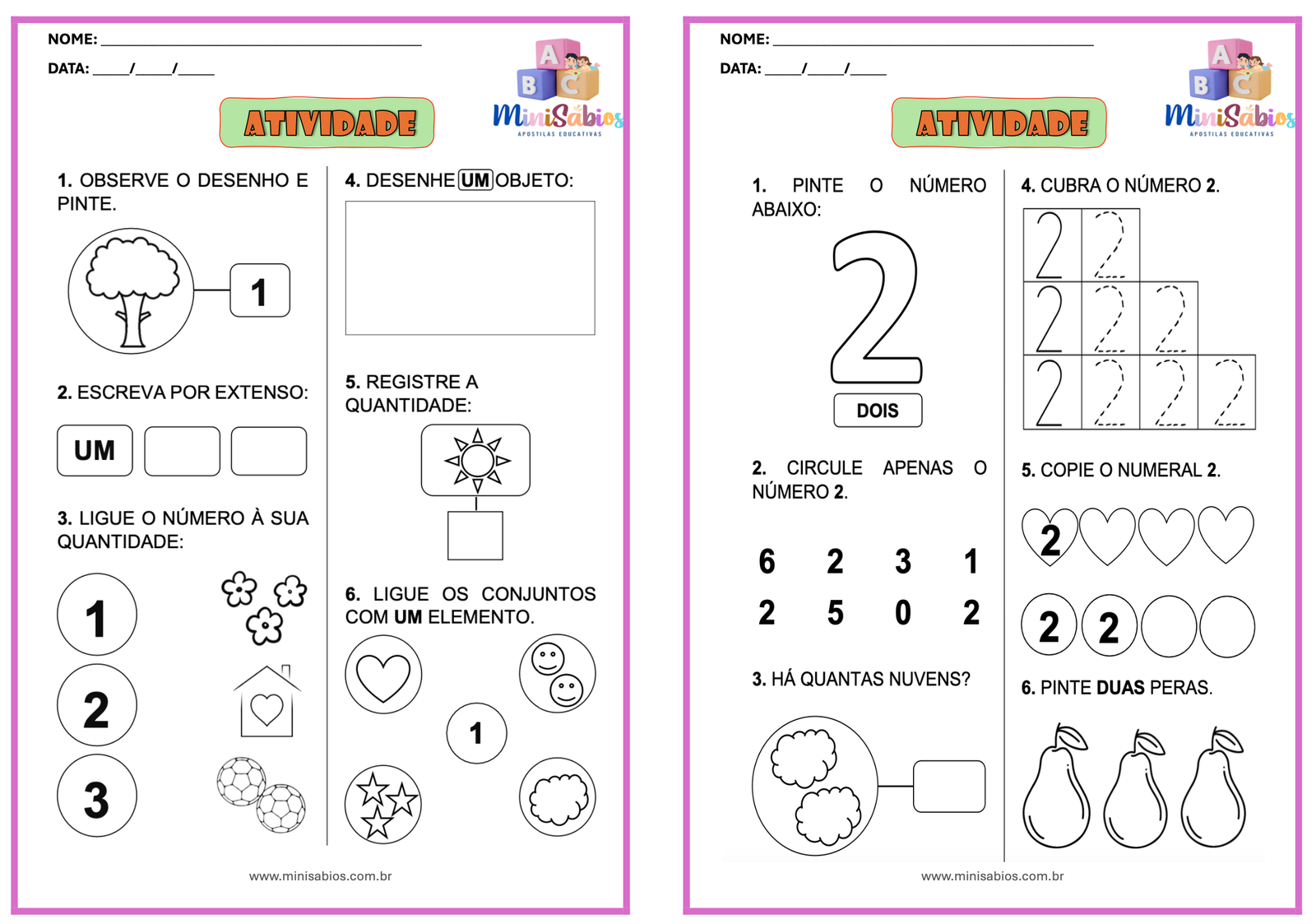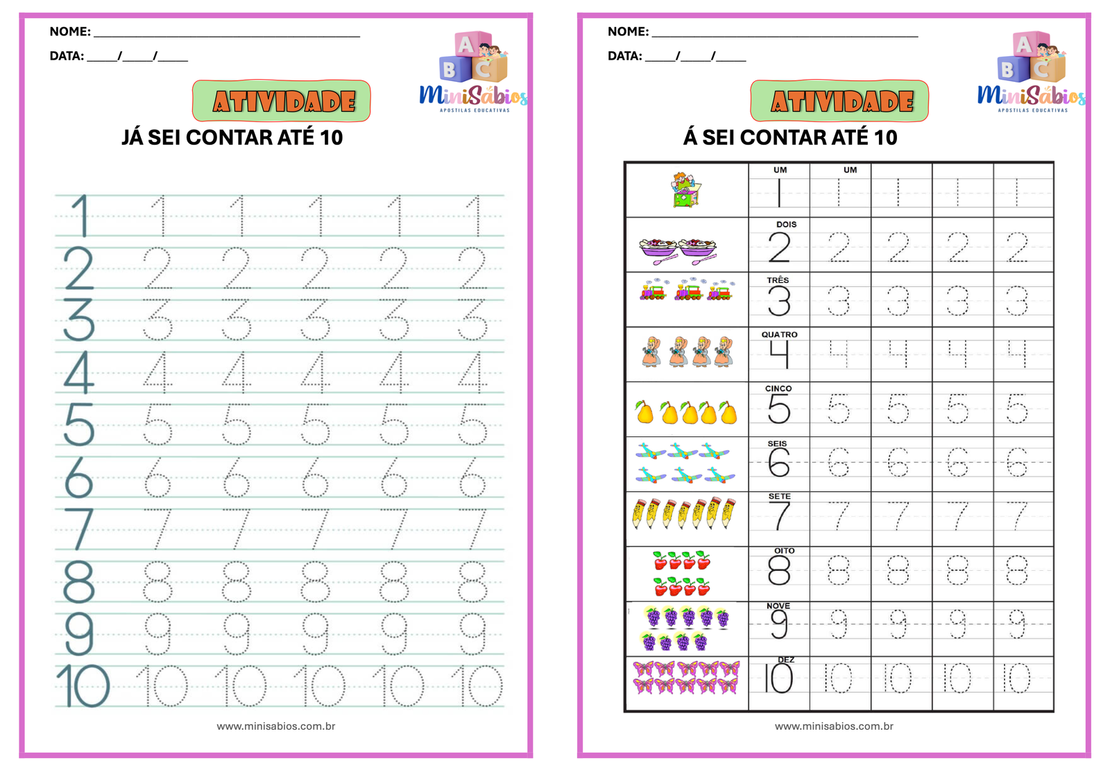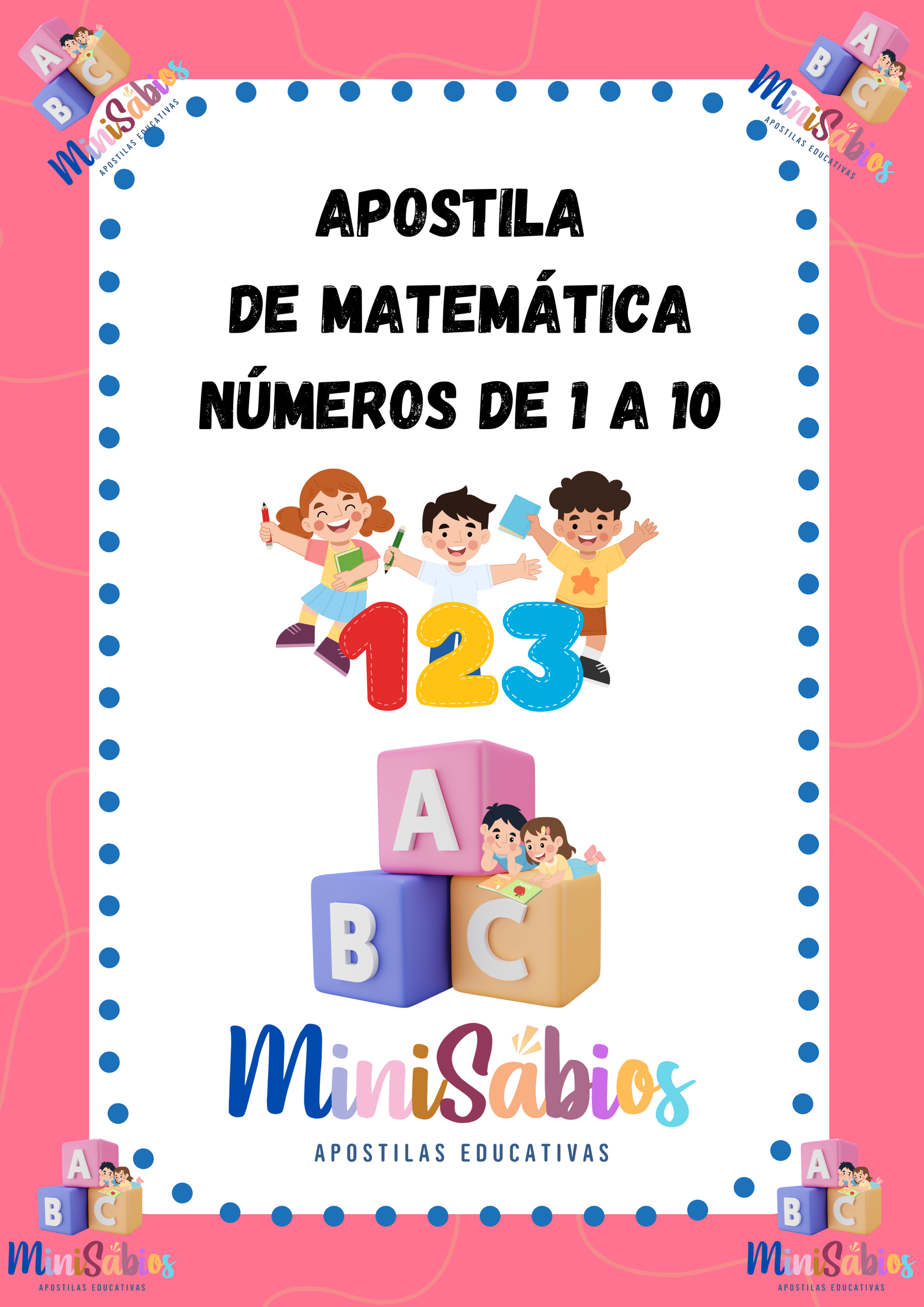 Explore o mundo dos números com esta apostila completa! Com 33 páginas de atividades práticas e lúdicas, as crianças aprenderão a identificar, contar, escrever e reconhecer os números de 1 a 10 de forma divertida. Ideal para a educação infantil e primeiros passos na matemática. Disponível no MiniSábios!